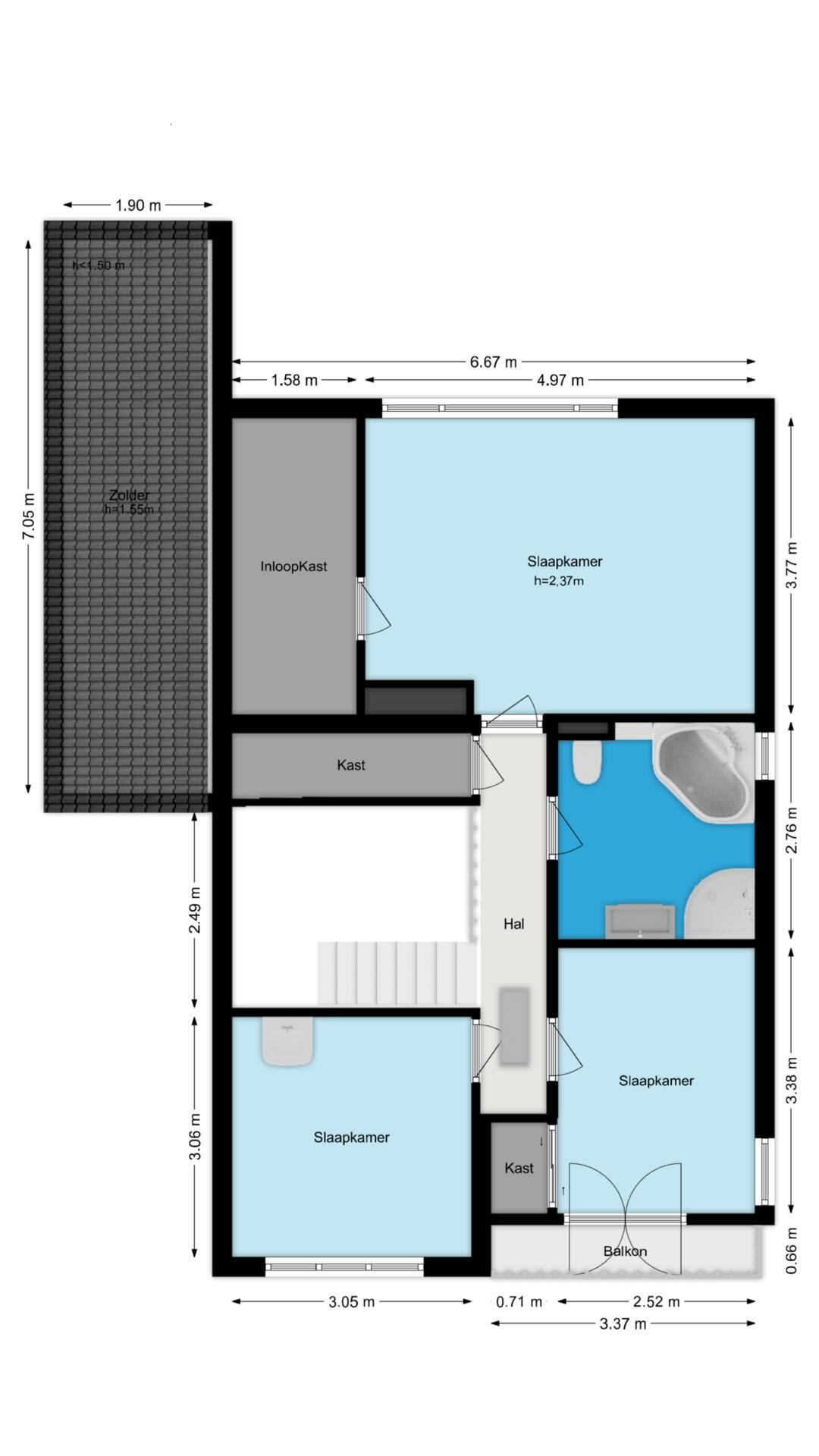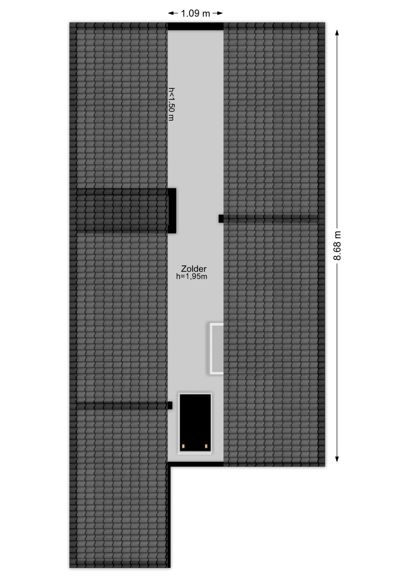 De bergzolder heeft in de nok een stahoogte van circa 1,95 m en is uitgerust met een dakraam.